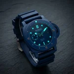 * Cadran Décentré : Les heures et les minutes sont affichées sur un petit cadran incliné à 12 heures, réalisé en Glow (Super-LumiNova® tridimensionnel), assurant une lisibilité parfaite même dans l’obscurité.