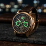 Le cœur de cette montre est le Calibre 388, doté de l’Héliotourbillon. Ce mécanisme révolutionnaire tourne sur trois axes, créant un mouvement cinétique qui rappelle une toupie. Cette construction permet de compenser les effets de la gravité dans toutes les positions de la montre, offrant une précision de marche inégalée.